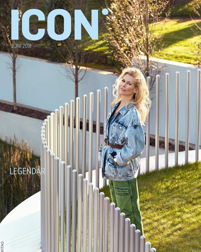 Claudia Schiffer为Iconist 杂志刊登了三个封面。由Agata Pospieszynska 拍摄,这位超级名模在 Alexander McQueen 夹克和 Mih Jeans 裤子的第一个封面上身穿牛仔布。第二次,克劳迪娅穿着范思哲的粉色 T 恤和牛仔裤。在第三张封面上,这位金发美女模特身着 Jessie Western 牛仔夹克和 Stella McCartney 裤子。在杂志中,克劳迪娅拥抱了露西·麦卡林 ( Lucie McCullin ) 设计的漂亮夏日粉彩。