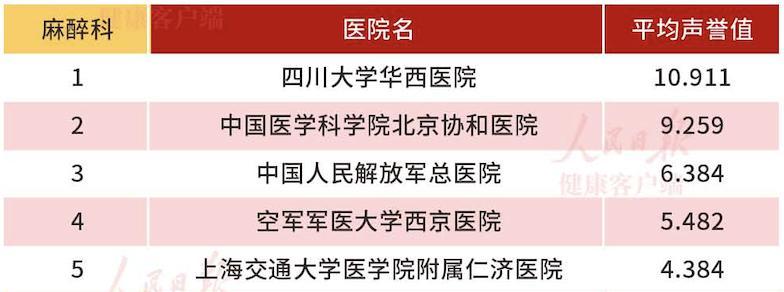 4、麻醉科:上海仁济医院挤进前五,武汉协和医院被挤出