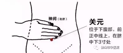 4. 将左手掌放在脐下3寸处,向左右各旋转按揉20次。